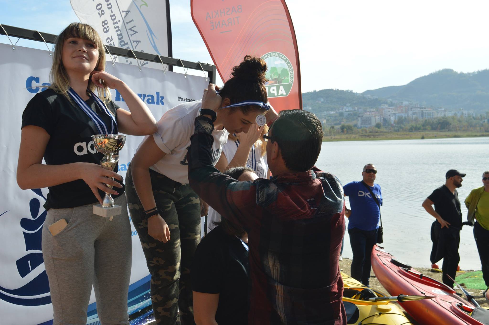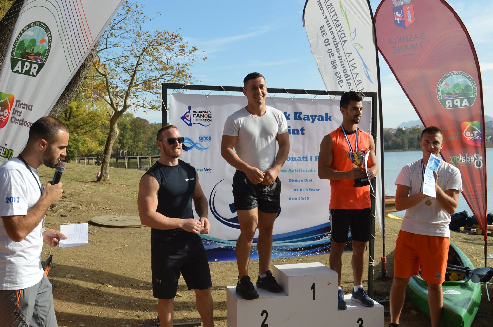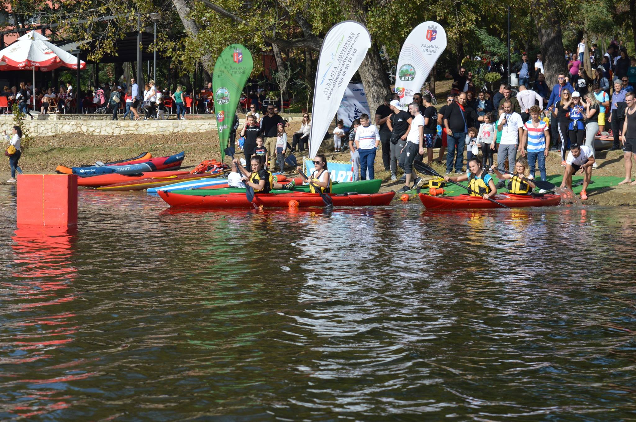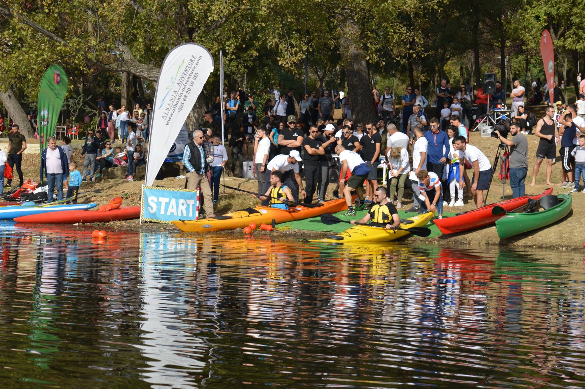 Dita e dielë në Liqenin Artificial të Tiranës ka qenë krejtësisht ndryshe. Kampionati i parë i kajakut dhe kanoes për femra e meshkuj ka bërë kureshtar dhe qytetarët e kryeqytetit. Pjesëtarë nga Shkodra, Lezha, Durrës, Elbasani, poor dhe Universiteti i Sporteve kanë konkurruar në kanoe njësh, apo tek, si dhe në kanoe çift. Dekani i Fakultetit të veprimtarive fizike dhe rekreacionit në Universitetin e Sporteve, Ferdinand Mara, ka shpjeguar dhe idenë e disiplinës sportive të kanoes, e cila është e kurrikulës mësimore. “Ky është kampionati i parë i kanoes dhe kajakut, një disiplinë e re sportive me një pjesëmarrje nga Shkodra, Lezha dhe Durrësi, por me një pjesëmarrje të gjerë dhe nga studentët e Fakultetit të veprimtarive lëvizore dhe rekreacionit të Universitetit të Sporteve në Tiranë. Ne e kemi pjesë të kurrikulës mësimore pikërisht kanoen dhe kajakun, kështu që gjithçka do të jetë ok”, thotë Mara. Madje për Marën, këta studentë që diplomohen, gjithnjë duke e pasur pjesë të temës sportin e kajak dhe të kanoes, do të mund ta çojnë përpara për t’u zhvilluar si një sport i ri në vendin tonë. “Sepse si pjesë të temës së diplomës do të duhet të përgatiten dhe për këtë disiplinë sportive, e cila është parapërgatitjes së tyre dhe për guidat turistike. Është fillimi, por shumë shpejt do të eci përpara si disiplinës sportive”. Sekretari i përgjithshëm i Federatës Shqiptare të Kanoes dhe Kajak, Renato Milova, ka treguar dhe ata që e kanë bërë të mundur këtë aktivitet, ndërsa është i bindur se gjithçka do të ketë një zhvillim cilësor. “Normalisht ne kemi bërë dhe veprimtari lokale, por kjo është më e gjerë si aktivitet. Jemi pjesë e Federatës Evropiane dhe Botërore e shumë shpejt presim që të jemi dhe në aktivitetet ndërkombëtare. Sa më parë të na lajmërojnë, aq më shpejt do të marrim pjesë në aktivitetet ndërkombëtare”, ka nënvizuar Milova. Garat janë dhënë me start me pistoletë, ndërsa është konkurruar me kohë në një largësi prej 200 metrash. Nga vendi i parë deri tek i pesti ka pasur medalje, kurse për tre vendet e para në kanoe njësh dhe kanoen dyshe dhe Kupë. Sikurse për të gjithë pjesëmarrësit dhe një certifikatë. Nuk ka munguar në këtë aktivitet dhe sekretari i përgjithshëm i Komitetit Olimpik Kombëtar Shqiptar, Stavri Bello. E fituesit zyrtar të kampionatit të parë kombëtar të kanoes dhe kajak janë Klejvi Panda me kohën 46”84 në teke, Elvis Bilali-Kliti Hoti me 58”27 në atë çift meshkuj, si dhe Xhesika Kurti-Kleanthi Sefdolli me 1’21”06 në atë çift femra.